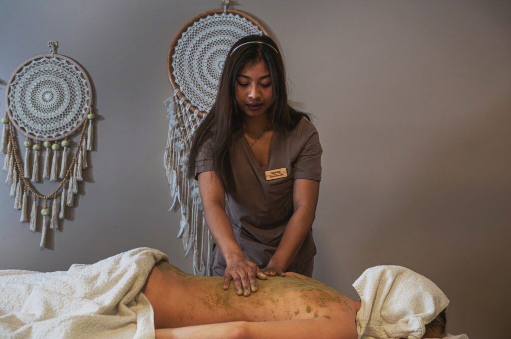 Odkryj moc Udvarthany – starożytnej terapii ajurwedyjskiej łączącej peeling ze sproszkowanych ziół z pobudzającym masażem. Zabieg wspiera usuwanie toksyn, poprawia metabolizm komórkowy i wygładza skórę, przywracając ciału naturalną równowagę i energię życiową.